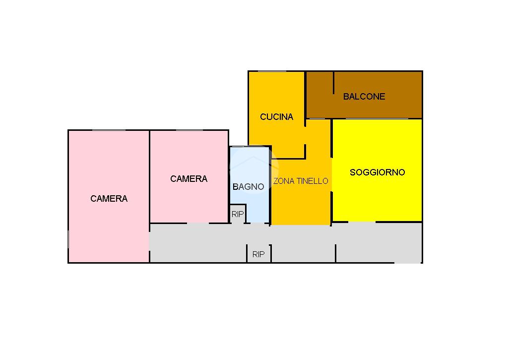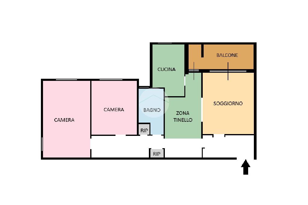 L'immobile è composto da ingresso, soggiorno con zona tinello e cucina abitabile, entrambi con accesso diretto al balcone, ideale per godersi momenti di relax all'aperto.